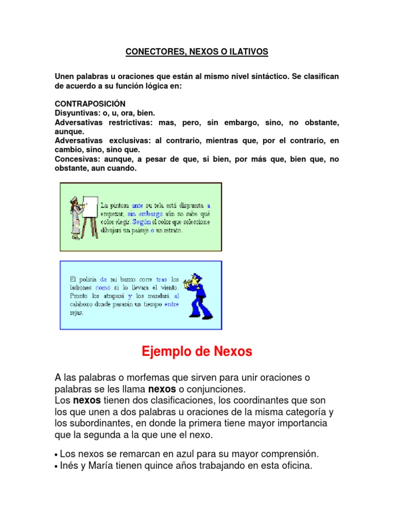 ¿cuáles son las oraciones adversativas? .nexo es un conector gramatical usado en una frase para unir dos ideas o enunciados y es un recurso lingüístico que ayuda a dar coherencia y cohesión a la redacción de un. 10000+ resultados para 'conectores o nexos'. Porque, ya que, pues, debido que. Esas palabras son los nexos o conectores en inglés y, a continuación, aprenderemos qué son y cómo usarlos.