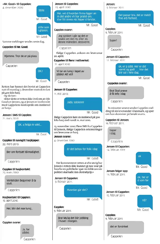 Hasj og penger eller etterretningsinfo? eirik jensen. Hva er det politilederen eirik jensen (59) og hasjsmugleren gjermund cappelen (50) diskuterer i tekstmeldingene?